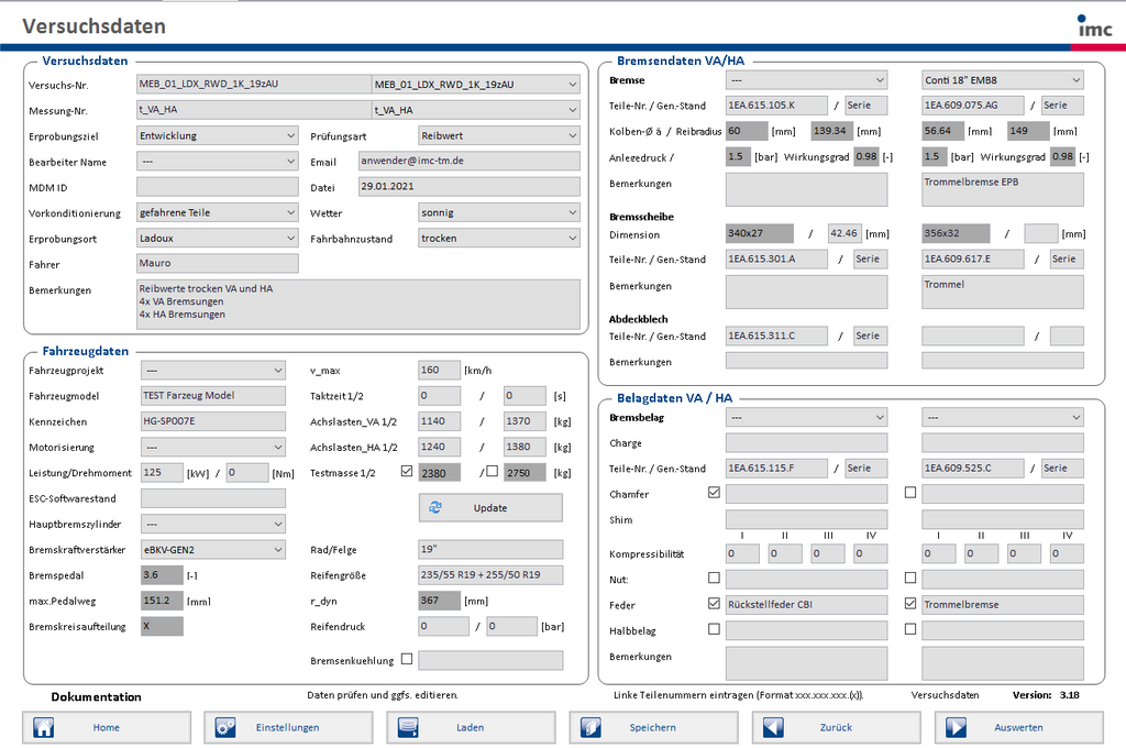 Das imc Bremsmesssystem ist eine umfassende Testlösung für Entwickler moderner KFZ-Bremssysteme. Es besteht aus einem modularen Datenerfassungssystem inklusive optionaler Sensorik und Radtelemetrie und einem Softwarepacket für alle gängigen Bremsentests. Es erfasst und verarbeitet alle relevanten Messgrößen wie Bremskraft, Pedalweg, Temperatursensoren, Innen- und Aussenschall (Mikrofone) wie auch Vibrationen. Ebenso können digitale Informationen beispielsweise der imc Radtelemetrie für Bremsscheibentempertaturen oder Informationen aus Feldbussen wie CAN, CAN FD, XCPoE, Flexray, etc. synchron erfasst werden. Die Tests werden in Anlehnung an internationale Normen wie ECE, ISO, FMSSV und SAE durchgeführt.