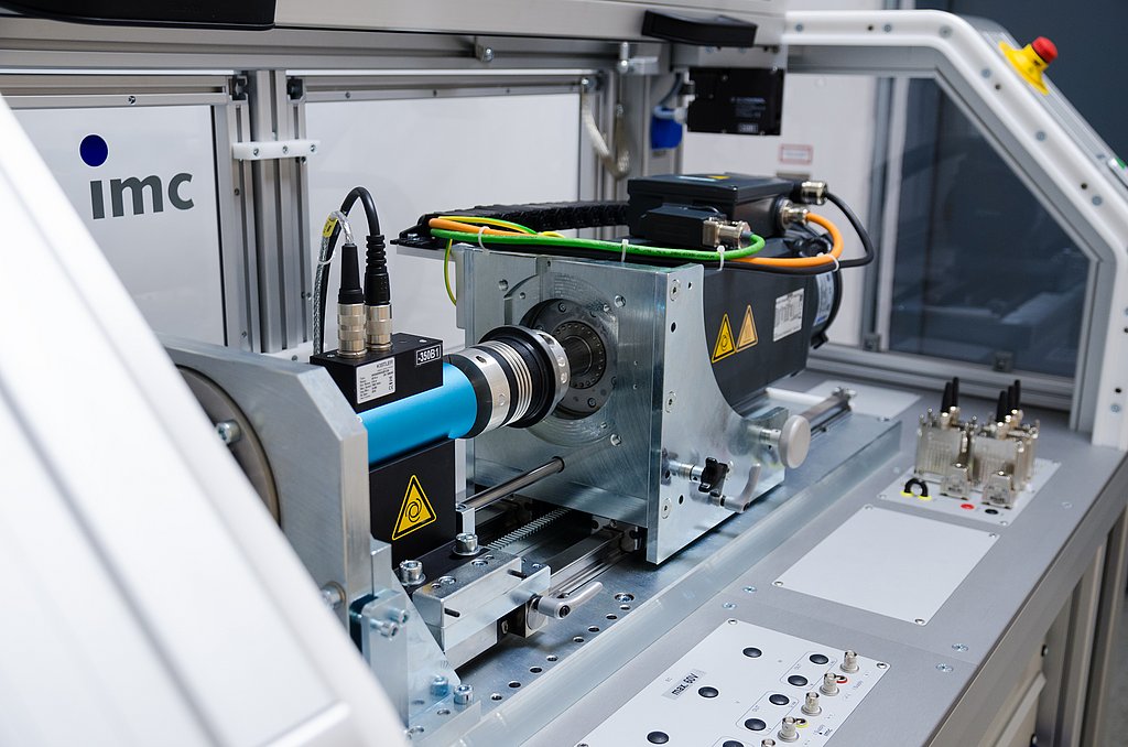 Dieser imc-Standardprüfstand ist an die Anforderungen des Kunden angepasst. Beim Prüfstand kommen Komponenten mit einem hohen Wirkungsgrad zum Einsatz: So wird die vom Bremsmotor aufgenommene Energie wieder ins Netz zurückgespeist und lässt sich wieder für die elektrische Antriebsenergie nutzen. Durchschnittlich nimmt der Prüfstand dadurch nur etwa 0,5 kW elektrische Leistung auf.