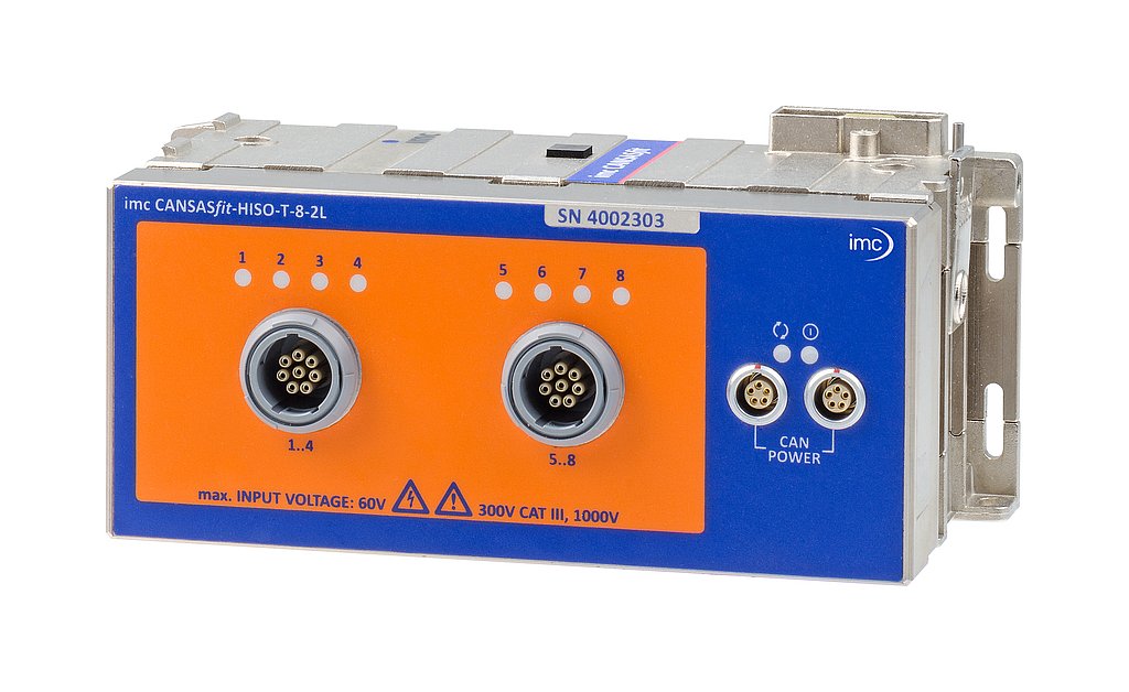 The new CAN-based temperature measurement module imc CANSASflex HISO-T-8-2L offers industry-leading safety isolation of up to 1400V, providing safety and precision in testing environments that go beyond 800V.