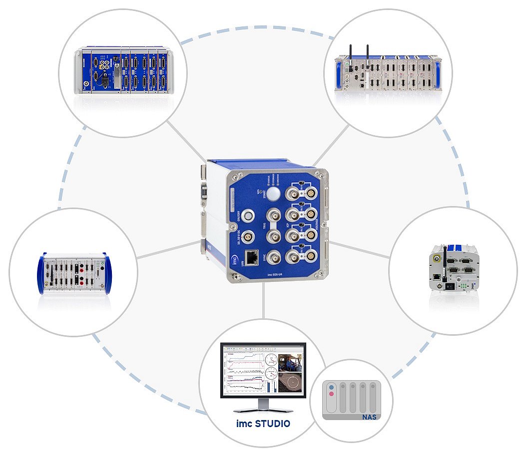 Al igual que con todos los sistemas de medición imc, imc EOS funciona con el software de medición uniforme imc STUDIO . Este software ofrece control total sobre el proceso completo de medición: desde la configuración del canal hasta el informe de la prueba. imc STUDIO reúne la adquisición de datos, visualización, análisis y automatización de pruebas. Independientemente de si configura su imc EOS para una medición móvil rápida en pruebas de "caja negra" o para pruebas exhaustivas con varios sistemas imc y cientos de canales, incluida la captura de video síncrona, con imc STUDIO tiene control total sobre su proceso de medición completo.