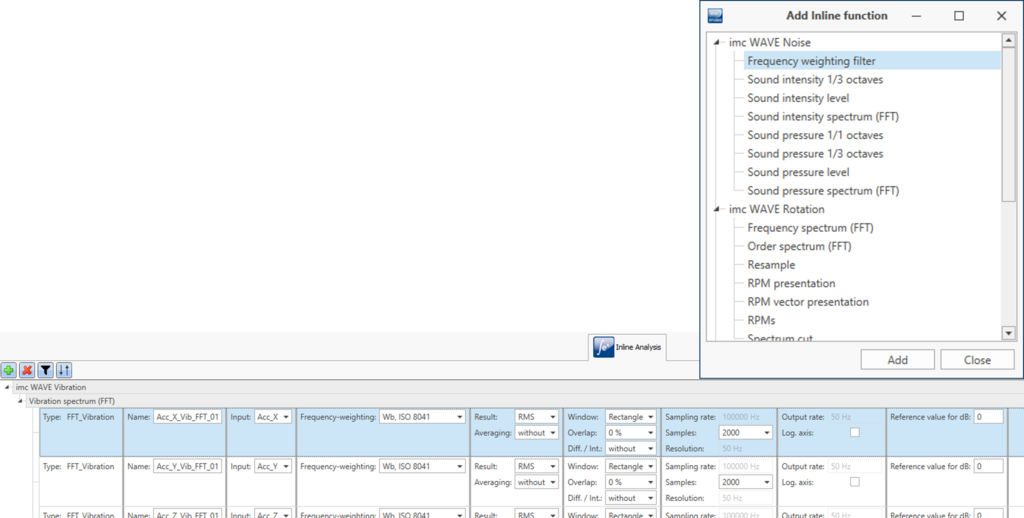 Wer über eine imc WAVE Lizenz verfügt, kann die darin enthaltenen NVH-Funktionen nun auch als fertige Inline-Funktion direkt in imc STUDIO benutzen. Fügen Sie einfach eine NVH-Analysefunktion zu einem bestehenden Kanal hinzu und Sie erhalten einen fertigen Ergebniskanal, ohne eine Zeile programmieren zu müssen. So verbinden Sie die umfassende NVH-Funktionalität von imc WAVE mit der Flexibilität und Freiheit von imc STUDIO.